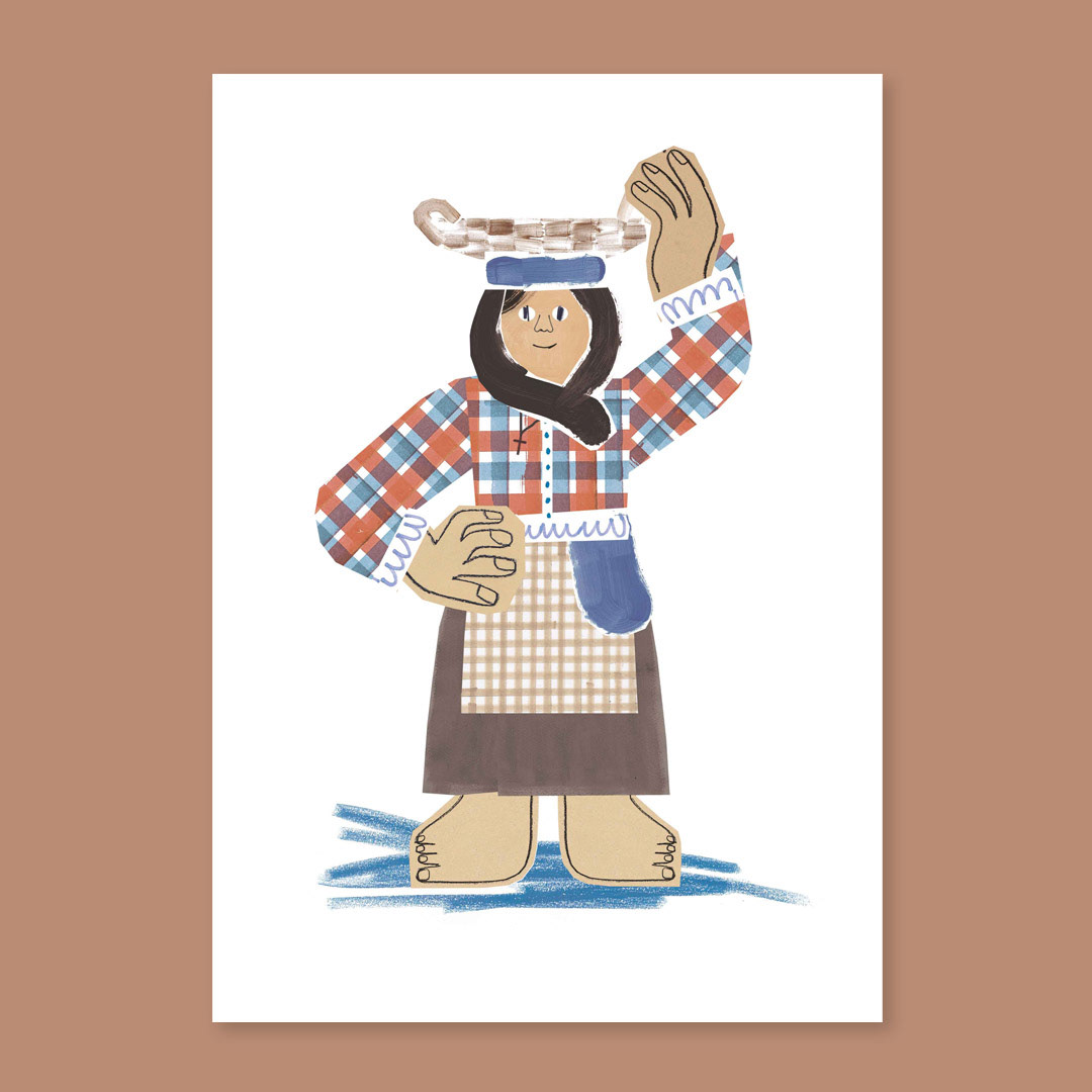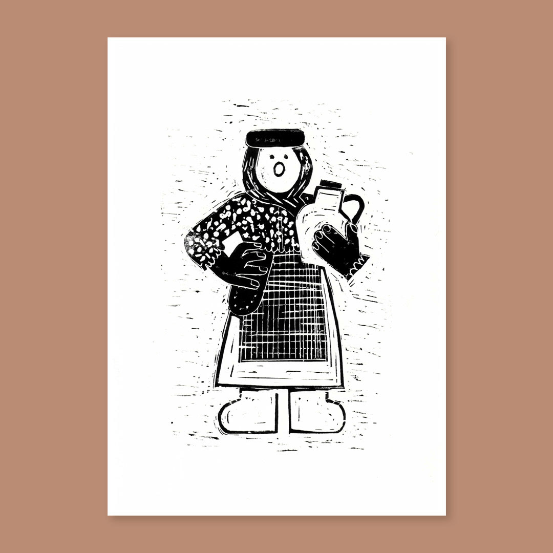 Linocut of a woman carrying water / Linogravura de uma aguadeira
