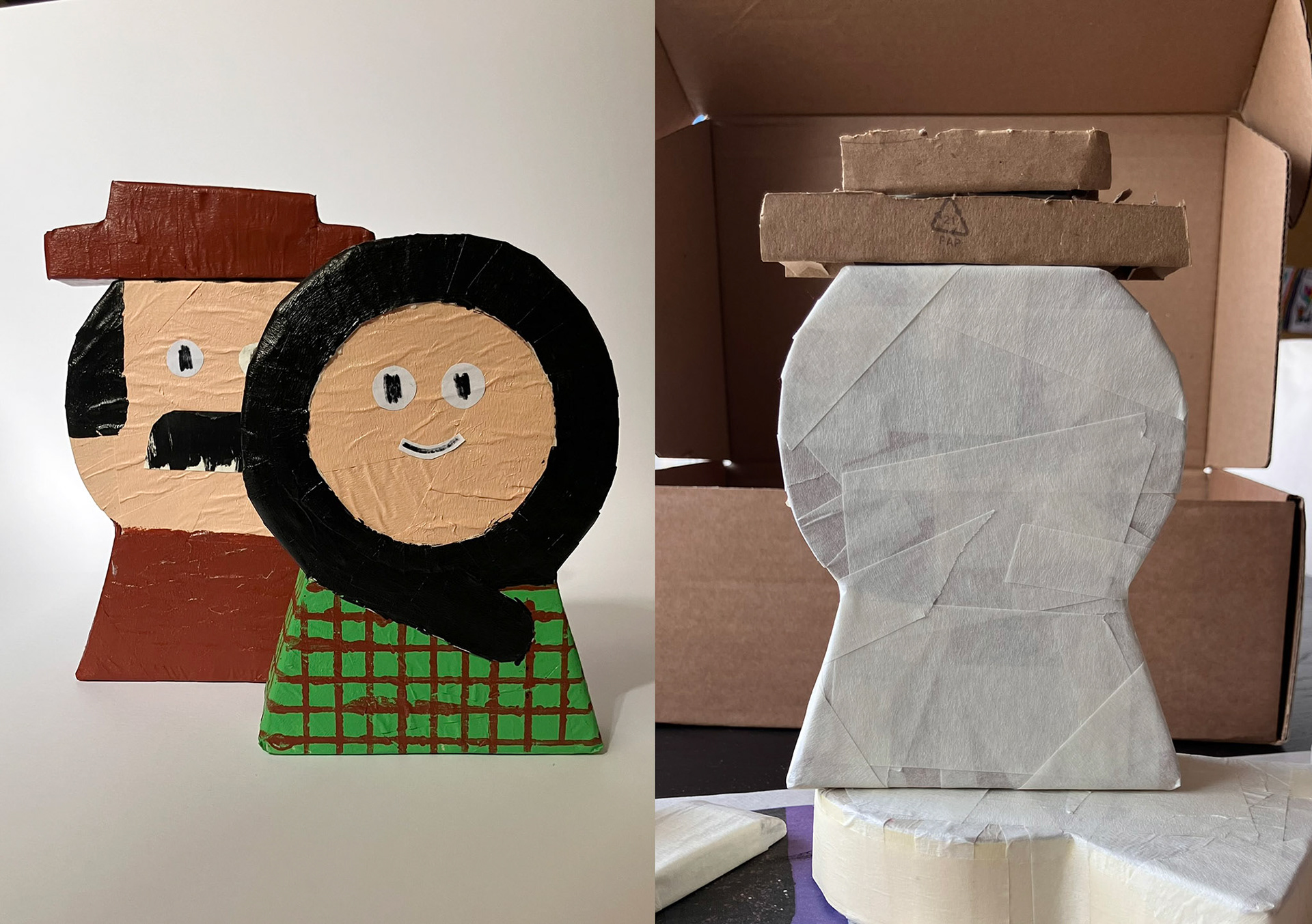 Papier-mâché and acrylic figures / Figuras em papel maché e acrílico