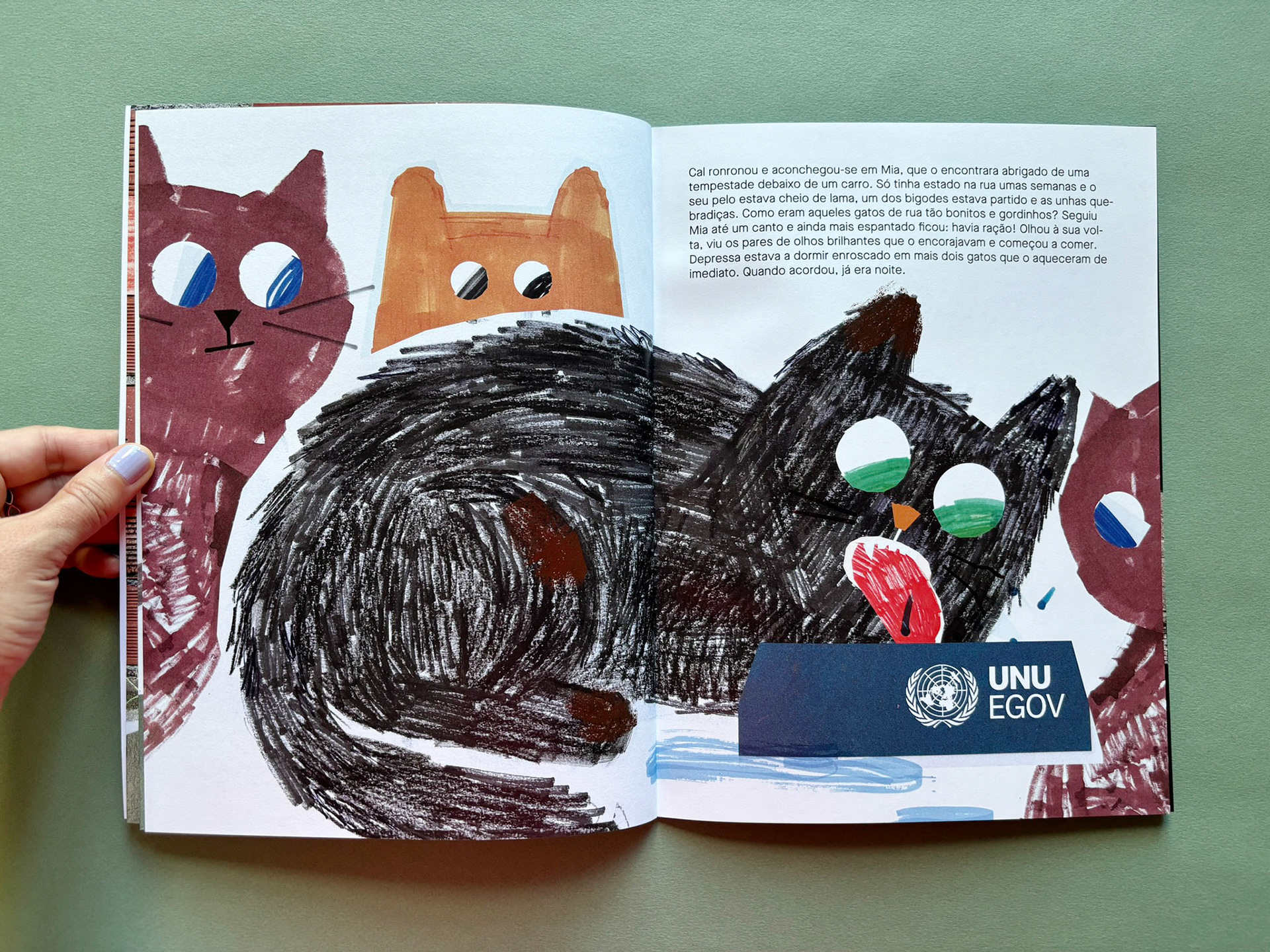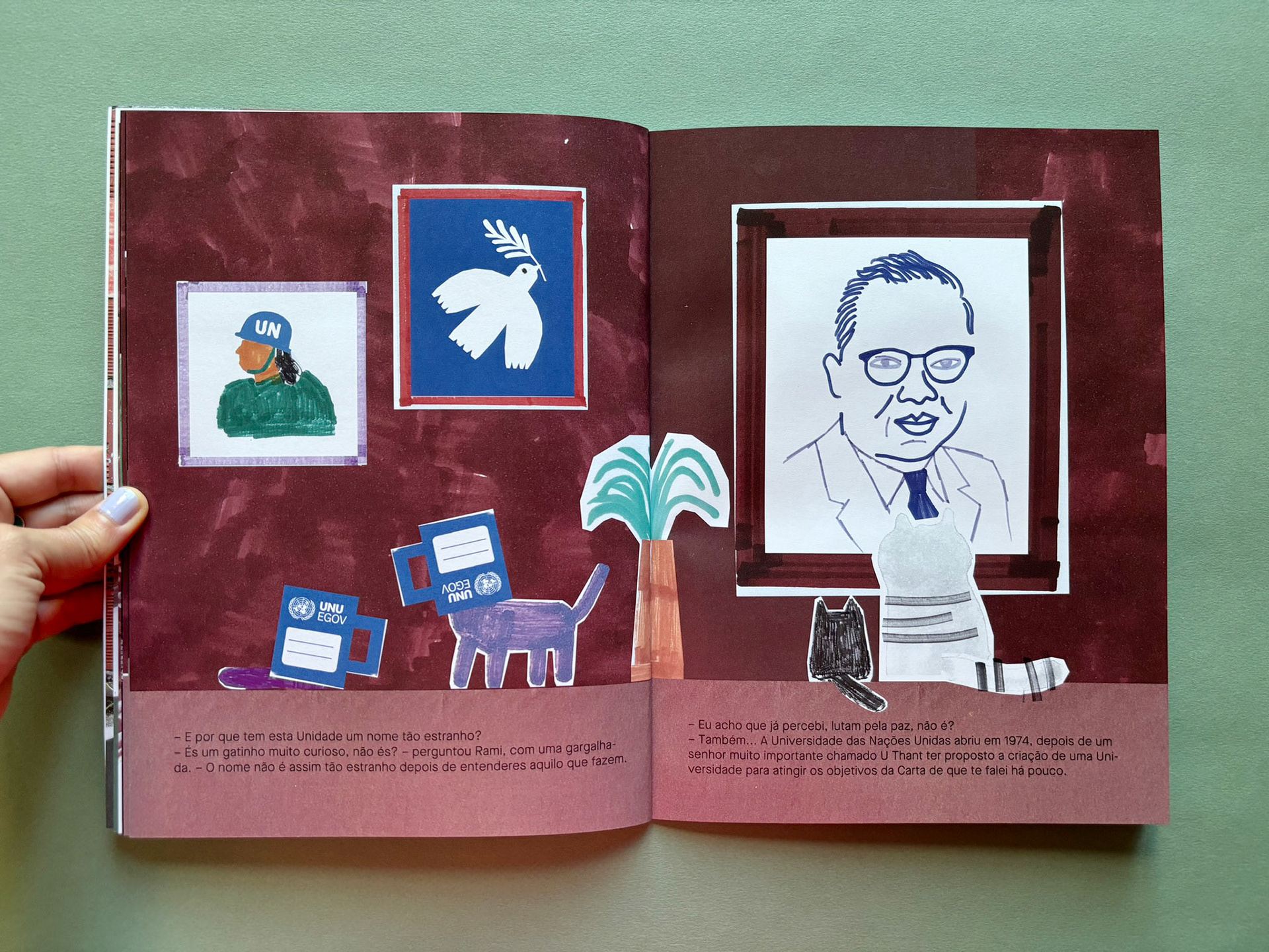 An educational children's book about the mission of UNU-EGOV (United Nations University - e-Governance Operational Unit) written by Flávia Barbosa and illustrated by me.